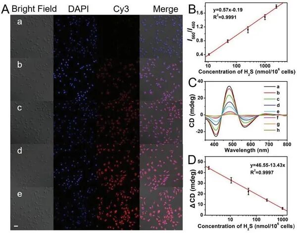手性CuxOS@ZIF-8纳米探针用于超灵敏定量检测体内硫化氢(H2S)
