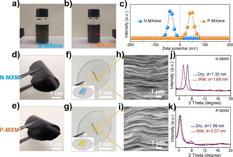 图二 带相反电荷的MXene膜的形貌及结构。
