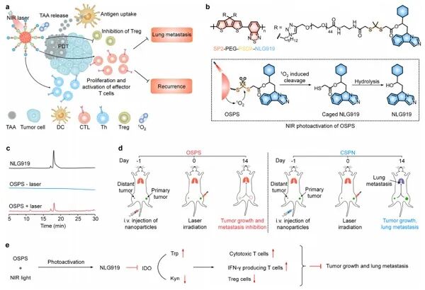 (e)OSPS介导的NIR光活化**症免疫**的总结图