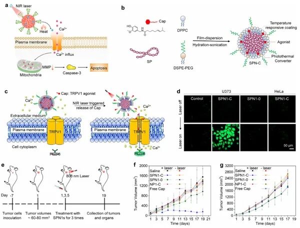 (a)用于特定**症**的光热激活SPN1-C的示意图
