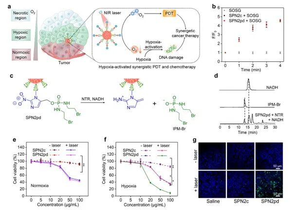 (a)SPN2pd用于乏氧激活的协同PDT和化疗的示意图
