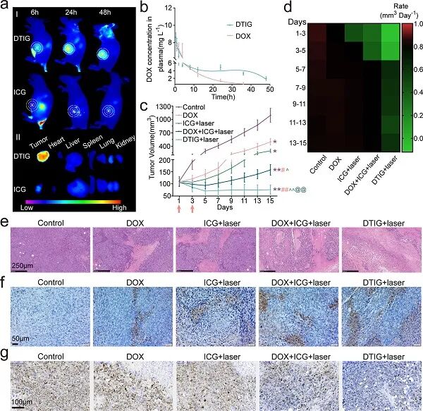 (e)DOX、TA、ICG、DT和DTIG的荧光光谱。