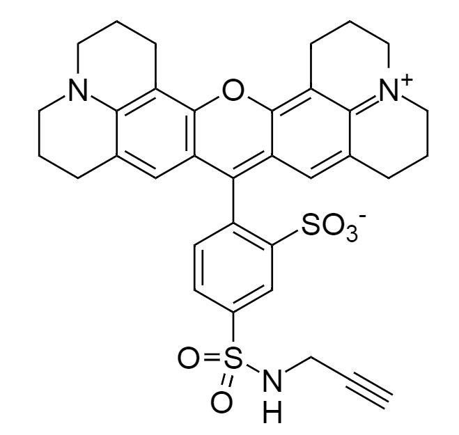 Single isomer,单一异构体,分子量:643.77,激发(nm):586,发射(nm):603,TexasRed®炔烃是一种出色的叠氮化物反应性荧光试剂,可通过众所周知的点击化学来标记含炔烃的生物分子。