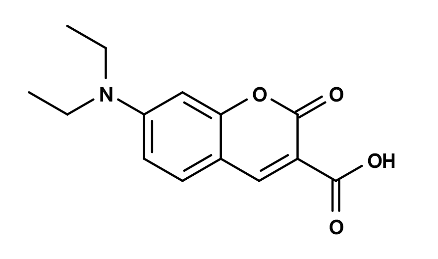 西安齐岳生物科技有限公司生产销售“DEAC|7-Diethylaminocoumarin-3-carboxylic acid|CAS 50995-74-9|7-二乙基氨基香豆素-3-羧酸”“分子量:261.27,激发(nm):411,发射(nm):472,7-二乙基氨基香豆素-3-羧酸可用于产生蓝色荧光生物共轭物。它具有很强的蓝色荧光。”,该产品仅用于科研,如果需要请联系我们