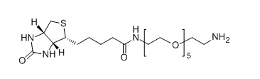 英文名称:Biotin-PEG5-NH2 CAS No.: 113072-75-6 产品纯度: ≥95% 分子式: C22H42N4O7S 分子量: 506.7