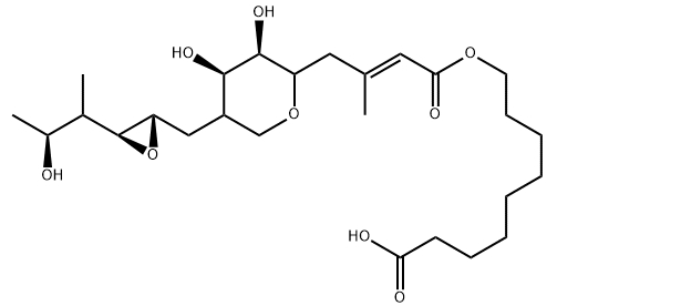 Mupirocin is an isoleucyl t-RNA synthetase inhibitor, used in the treatment of bacterial skin infections.