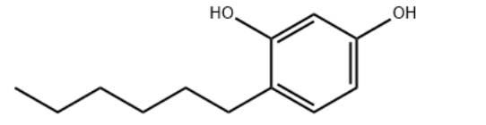 Hexylresorcinol is an organic compound with local anaesthetic, antiseptic and anthelmintic properties, is a potent inhibitor of mushroom tyrosinase. The IC50 values of hexylresorcinol for monophenolase is 1.24 μM and for diphenolase is 0.85 μM.