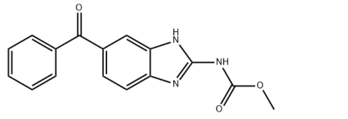 Mebendazole is a synthetic benzimidazole derivate and anthelmintic agent. Mebendazole interferes with the reproduction and survival of helminths by inhibiting the formation of their cytoplasmic microtubules,