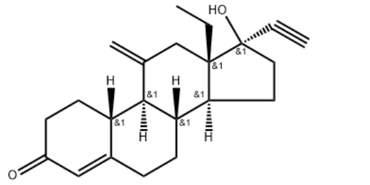 Etonogestrel is a synthetic form of the naturally occurring female sex hormone progesterone. It binds to the cytoplasmic progesterone receptors in the reproductive system and subsequently activates progesterone receptor mediated gene expression.