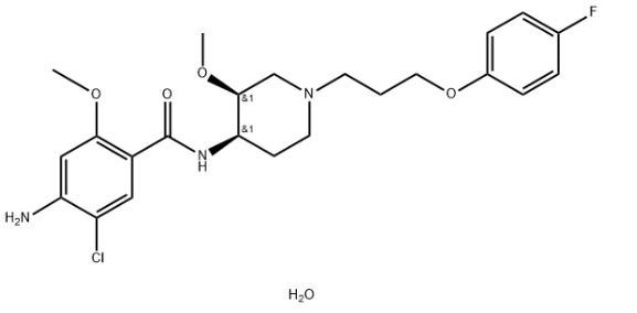 Cisapride acts directly as a selective serotonin 5-HT4 receptor agonist with IC50 of 0.483 μM. And It also acts indirectly as a parasympathomimetic.