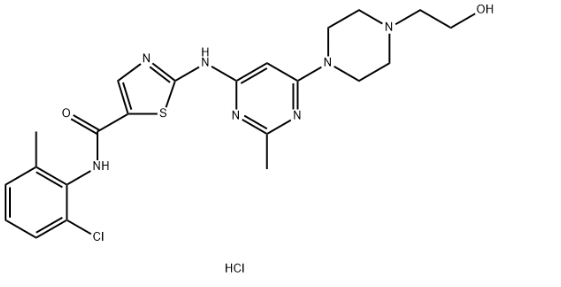 Dasatinib hydrochloride is a potent and dual AblWT/Src inhibitor IC50 of 0.6 nM/0.8 nM respectively; also inhibits c-KitWT/c-KitD816V with IC50 of 79 nM/37 nM.