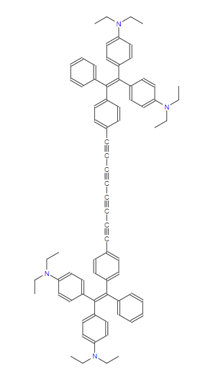 SMILES:CCN(CC)C1=CC=C(C(=C(C2=CC=CC=C2)C2=CC=C(C#CC#CC#CC#CC3=CC=C(C(=C(C4=CC=C(N(CC)CC)C=C4)C4=CC=C(N(CC)CC)C=C4)C4=CC=CC=C4)C=C3)C=C2)C2=CC=C(N(CC)CC)C=C2)C=C1
