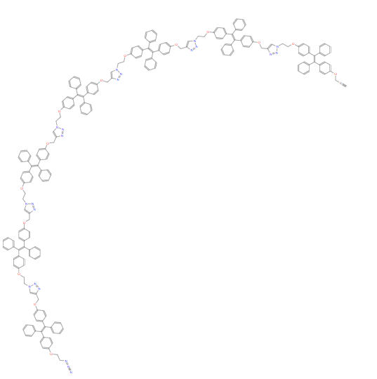 SMILES:C#CCOC1=CC=C(/C(=C(\C2=CC=CC=C2)C2=CC=C(OCCN3C=C(COC4=CC=C(/C(=C(\C5=CC=CC=C5)C5=CC=C(OCCN6C=C(COC7=CC=C(/C(=C(\C8=CC=CC=C8)C8=CC=C(OCCN9C=C(COC%10=CC=C(/C(=C(\C%11=CC=CC=C%11)C%11=CC=C(OCCN%12C=C(COC%13=CC=C(/C(=C(\C%14=CC=CC=C%14)C%14=CC=C(OCCN%15C=C(COC%16=CC=C(/C(=C(\C%17=CC=CC=C%17)C%17=CC=C(OCCN%18C=C(COC%19=CC=C(/C(=C(\C%20=CC=CC=C%20)C%20=CC=C(OCCN=[N+]=[N-])C=C%20)C%20=CC=CC=C%20)C=C%19)N=N%18)C=C%17)C%17=CC=CC=C%17)C=C%16)N=N%15)C=C%14)C%14=CC=CC=C%14)C=C%13)N=N%12)C=C%11)C%11=CC=CC=C%11)C=C%10)N=N9)C=C8)C8=CC=CC=C8)C=C7)N=N6)C=C5)C5=CC=CC=C5)C=C4)N=N3)C=C2)C2=CC=CC=C2)C=C1