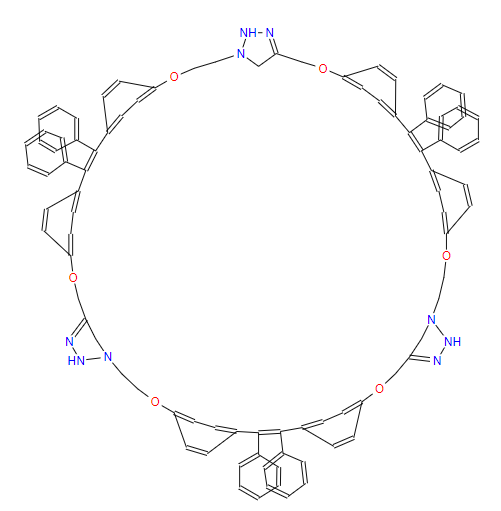 SMILES:C1=CC=C(/C2=C(/C3=CC=CC=C3)C3=CC=C(C=C3)OCC3=NNN(CCOC4=CC=C(C=C4)/C(C4=CC=CC=C4)=C(\C4=CC=CC=C4)C4=CC=C(C=C4)OCC4=NNN(CCOC5=CC=C(C=C5)/C(C5=CC=CC=C5)=C(\C5=CC=CC=C5)C5=CC=C(C=C5)OCC5=NNN(CCOC6=CC=C2C=C6)C5)C4)C3)C=C1