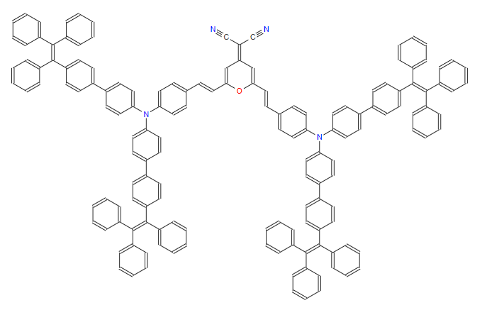 SMILES:N#CC(C#N)=C1C=C(/C=C/C2=CC=C(N(C3=CC=C(C4=CC=C(C(=C(C5=CC=CC=C5)C5=CC=CC=C5)C5=CC=CC=C5)C=C4)C=C3)C3=CC=C(C4=CC=C(C(=C(C5=CC=CC=C5)C5=CC=CC=C5)C5=CC=CC=C5)C=C4)C=C3)C=C2)OC(/C=C/C2=CC=C(N(C3=CC=C(C4=CC=C(C(=C(C5=CC=CC=C5)C5=CC=CC=C5)C5=CC=CC=C5)C=C4)C=C3)C3=CC=C(C4=CC=C(C(=C(C5=CC=CC=C5)C5=CC=CC=C5)C5=CC=CC=C5)C=C4)C=C3)C=C2)=C1