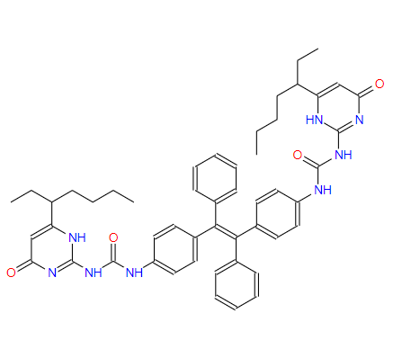 Code Name:(E)-TPE-UPy CAS number:2107305-74-6 Formula:C50H56N8O4 Molecular weight:833.05 cLogP:11.52 TPSA:173.76