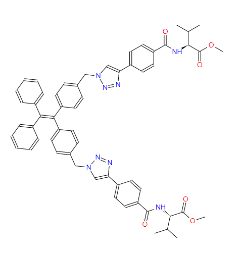 SMILES:COC(=O)[C@@H](NC(=O)C1=CC=C(C2=CN(CC3=CC=C(C(=C(C4=CC=CC=C4)C4=CC=CC=C4)C4=CC=C(CN5C=C(C6=CC=C(C(=O)N[C@H](C(=O)OC)C(C)C)C=C6)N=N5)C=C4)C=C3)N=N2)C=C1)C(C)C