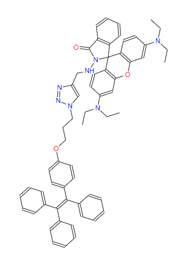 SMILES:CCN(CC)C1=CC2=C(C=C1)C1(C3=C(C=C(N(CC)CC)C=C3)O2)C2=C(C=CC=C2)C(=O)N1NCC1=CN(CCCOC2=CC=C(C(=C(C3=CC=CC=C3)C3=CC=CC=C3)C3=CC=CC=C3)C=C2)N=N1