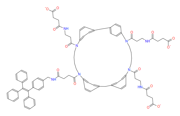SMILES:O=C([O-])CCC(=O)NCCC(=O)N1CCCCN(C(=O)CCNC(=O)CCC(=O)[O-])C2=CC=C(C=C2)CC2=CC=C(C=C2)N(C(=O)CCC(=O)NCC2=CC=C(C(=C(C3=CC=CC=C3)C3=CC=CC=C3)C3=CC=CC=C3)C=C2)CCCCN(C(=O)CCNC(=O)CCC(=O)[O-])C2=CC=C(C=C2)CC2=CC=C1C=C2