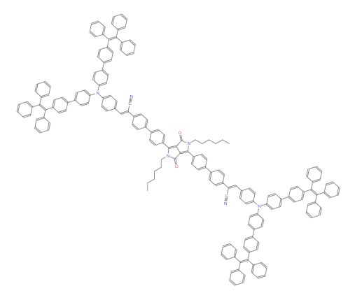 SMILES:CCCCCCN1C(=O)C2=C(C3=CC=C(C4=CC=C(/C(C#N)=C/C5=CC=C(N(C6=CC=C(C7=CC=C(C(=C(C8=CC=CC=C8)C8=CC=CC=C8)C8=CC=CC=C8)C=C7)C=C6)C6=CC=C(C7=CC=C(C(=C(C8=CC=CC=C8)C8=CC=CC=C8)C8=CC=CC=C8)C=C7)C=C6)C=C5)C=C4)C=C3)N(CCCCCC)C(=O)C2=C1C1=CC=C(C2=CC=C(/C(C#N)=C/C3=CC=C(N(C4=CC=C(C5=CC=C(C(=C(C6=CC=CC=C6)C6=CC=CC=C6)C6=CC=CC=C6)C=C5)C=C4)C4=CC=C(C5=CC=C(C(=C(C6=CC=CC=C6)C6=CC=CC=C6)C6=CC=CC=C6)C=C5)C=C4)C=C3)C=C2)C=C1