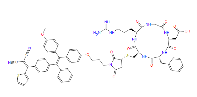 Code Name:trans-TPETH-MAL-RGD CAS number:1905476-92-7 Formula:C66H65N11O11S2 Molecular weight:1252.45 cLogP:5.29 TPSA:348.12