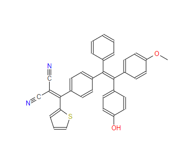 SMILES:COC1=CC=C(C(=C(C2=CC=CC=C2)C2=CC=C(C(=C(C#N)C#N)C3=CC=CS3)C=C2)C2=CC=C(O)C=C2)C=C1