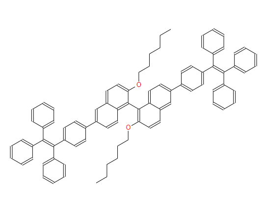 SMILES:CCCCCCOC1=CC=C2C=C(C3=CC=C(C(=C(C4=CC=CC=C4)C4=CC=CC=C4)C4=CC=CC=C4)C=C3)C=CC2=C1C1=C(OCCCCCC)C=CC2=CC(C3=CC=C(C(=C(C4=CC=CC=C4)C4=CC=CC=C4)C4=CC=CC=C4)C=C3)=CC=C12