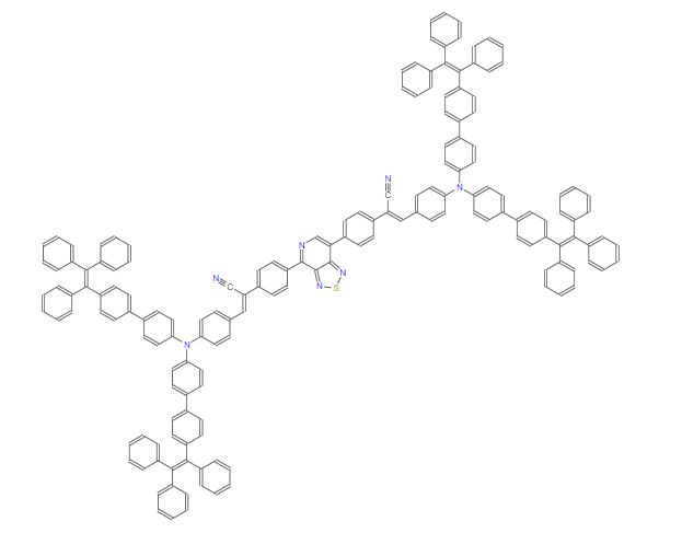 SMILES:N#C/C(=C\C1=CC=C(N(C2=CC=C(C3=CC=C(C(=C(C4=CC=CC=C4)C4=CC=CC=C4)C4=CC=CC=C4)C=C3)C=C2)C2=CC=C(C3=CC=C(C(=C(C4=CC=CC=C4)C4=CC=CC=C4)C4=CC=CC=C4)C=C3)C=C2)C=C1)C1=CC=C(C2=CN=C(C3=CC=C(/C(C#N)=C/C4=CC=C(N(C5=CC=C(C6=CC=C(C(=C(C7=CC=CC=C7)C7=CC=CC=C7)C7=CC=CC=C7)C=C6)C=C5)C5=CC=C(C6=CC=C(C(=C(C7=CC=CC=C7)C7=CC=CC=C7)C7=CC=CC=C7)C=C6)C=C5)C=C4)C=C3)C3=NSN=C23)C=C1