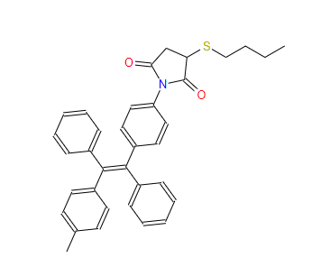 SMILES:CCCCSC1CC(=O)N(C2=CC=C(/C(=C(\C3=CC=CC=C3)C3=CC=C(C)C=C3)C3=CC=CC=C3)C=C2)C1=O