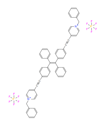 SMILES:C(#CC1=CC=[N+](CC2=CC=CC=C2)C=C1)C1=CC=C(/C(=C(\C2=CC=CC=C2)C2=CC=C(C#CC3=CC=[N+](CC4=CC=CC=C4)C=C3)C=C2)C2=CC=CC=C2)C=C1.F[P-](F)(F)(F)(F)F.F[P-](F)(F)(F)(F)F