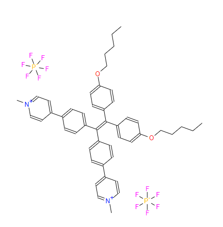 SMILES:CCCCCOC1=CC=C(C(=C(C2=CC=C(C3=CC=[N+](C)C=C3)C=C2)C2=CC=C(C3=CC=[N+](C)C=C3)C=C2)C2=CC=C(OCCCCC)C=C2)C=C1.F[P-](F)(F)(F)(F)F.F[P-](F)(F)(F)(F)F