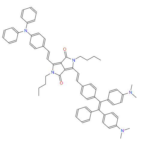 SMILES:CCCCN1C(=O)C2=C(/C=C/C3=CC=C(N(C4=CC=CC=C4)C4=CC=CC=C4)C=C3)N(CCCC)C(=O)C2=C1/C=C/C1=CC=C(/C(=C(\C2=CC=CC=C2)C2=CC=C(N(C)C)C=C2)C2=CC=C(N(C)C)C=C2)C=C1