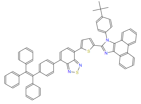 SMILES:CC(C)(C)C1=CC=C(N2C(C3=CC=C(C4=CC=C(C5=CC=C(C(=C(C6=CC=CC=C6)C6=CC=CC=C6)C6=CC=CC=C6)C=C5)C5=NSN=C45)S3)=NC3=C2C2=CC=CC=C2C2=C3C=CC=C2)C=C1
