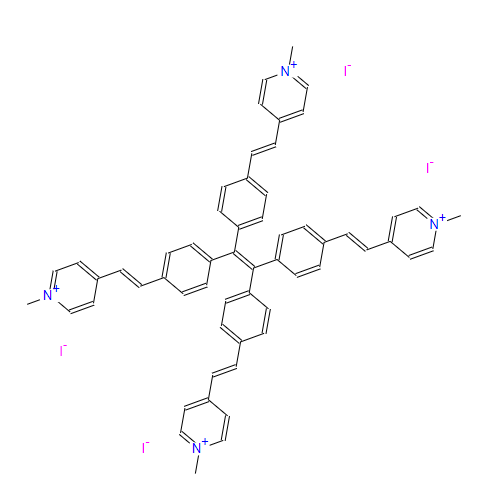 SMILES:C[N+]1=CC=C(/C=C/C2=CC=C(/C(C3=CC=C(/C=C/C4=CC=[N+](C)C=C4)C=C3)=C(C5=CC=C(/C=C/C6=CC=[N+](C)C=C6)C=C5)/C7=CC=C(/C=C/C8=CC=[N+](C)C=C8)C=C7)C=C2)C=C1.[I-].[I-].[I-].[I-]