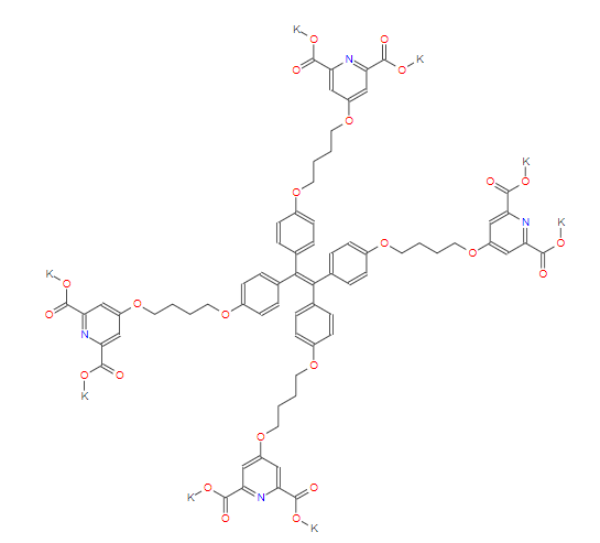 SMILES:O=C(O[K])C1=NC(C(O[K])=O)=CC(OCCCCOC2=CC=C(/C(C3=CC=C(OCCCCOC4=CC(C(O[K])=O)=NC(C(O[K])=O)=C4)C=C3)=C(C5=CC=C(OCCCCOC6=CC(C(O[K])=O)=NC(C(O[K])=O)=C6)C=C5)/C7=CC=C(OCCCCOC8=CC(C(O[K])=O)=NC(C(O[K])=O)=C8)C=C7)C=C2)=C1