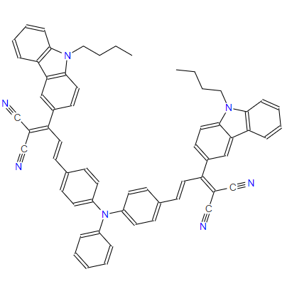 SMILES:CCCCN1C2=C(C=CC=C2)C2=C1C=CC(C(/C=C/C1=CC=C(N(C3=CC=CC=C3)C3=CC=C(/C=C/C(=C(C#N)C#N)C4=CC=C5C(=C4)C4=C(C=CC=C4)N5CCCC)C=C3)C=C1)=C(C#N)C#N)=C2