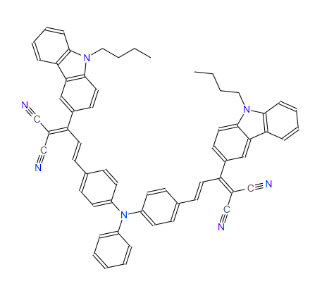 SMILES:CCCCN1C2=C(C=CC=C2)C2=C1C=CC(C(/C=C/C1=CC=C(N(C3=CC=CC=C3)C3=CC=C(/C=C/C(=C(C#N)C#N)C4=CC=C5C(=C4)C4=C(C=CC=C4)N5CCCC)C=C3)C=C1)=C(C#N)C#N)=C2