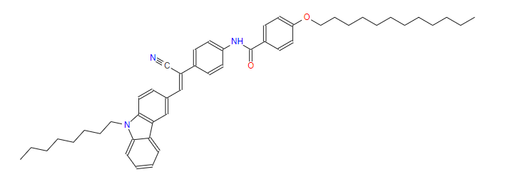 SMILES:CCCCCCCCCCCCOC1=CC=C(C(=O)NC2=CC=C(/C(C#N)=C/C3=CC4=C(C=C3)N(CCCCCCCC)C3=CC=CC=C43)C=C2)C=C1