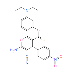 SMILES:CCN(CC)C1=CC=C2C3=C(C(=O)OC2=C1)C(C1=CC=C([N+](=O)[O-])C=C1)C(C#N)=C(N)O3