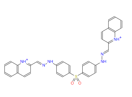 SMILES:O=S(=O)(C1=CC=C(N/N=C/C2=[NH+]C3=C(C=CC=C3)C=C2)C=C1)C1=CC=C(N/N=C/C2=[NH+]C3=C(C=CC=C3)C=C2)C=C1