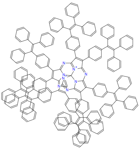SMILES:C1=CC=C(C(=C(C2=CC=CC=C2)C2=CC=C(C3=C(C4=CC=C(C(=C(C5=CC=CC=C5)C5=CC=CC=C5)C5=CC=CC=C5)C=C4)C4=[N+]5C3=NC3=C(C6=CC=C(C(=C(C7=CC=CC=C7)C7=CC=CC=C7)C7=CC=CC=C7)C=C6)C(C6=CC=C(C(=C(C7=CC=CC=C7)C7=CC=CC=C7)C7=CC=CC=C7)C=C6)=C6N=C7C(C8=CC=C(C(=C(C9=CC=CC=C9)C9=CC=CC=C9)C9=CC=CC=C9)C=C8)=C(C8=CC=C(C(=C(C9=CC=CC=C9)C9=CC=CC=C9)C9=CC=CC=C9)C=C8)C8=[N+]7C5(N36)N3C(=N4)C(C4=CC=C(C(=C(C5=CC=CC=C5)C5=CC=CC=C5)C5=CC=CC=C5)C=C4)=C(C4=CC=C(C(=C(C5=CC=CC=C5)C5=CC=CC=C5)C5=CC=CC=C5)C=C4)C3=N8)C=C2)C2=CC=CC=C2)C=C1