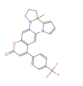 SMILES:CC12CCCN1C1=CC3=C(C=C1N1C=CC=C12)C(C1=CC=C(C(F)(F)F)C=C1)=CC(=O)O3