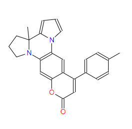 SMILES:CC1=CC=C(C2=CC(=O)OC3=CC4=C(C=C23)N2C=CC=C2C2(C)CCCN42)C=C1