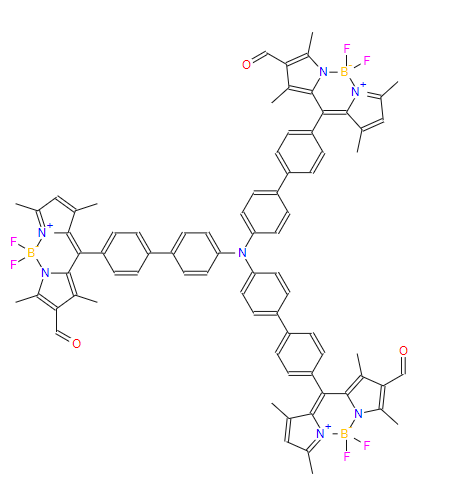 SMILES:CC1=CC(C)=[N+]2C1=C(C1=CC=C(C3=CC=C(N(C4=CC=C(C5=CC=C(C6=C7C(C)=CC(C)=[N+]7[B-](F)(F)N7C(C)=C(C=O)C(C)=C67)C=C5)C=C4)C4=CC=C(C5=CC=C(C6=C7C(C)=CC(C)=[N+]7[B-](F)(F)N7C(C)=C(C=O)C(C)=C67)C=C5)C=C4)C=C3)C=C1)C1=C(C)C(C=O)=C(C)N1[B-]2(F)F