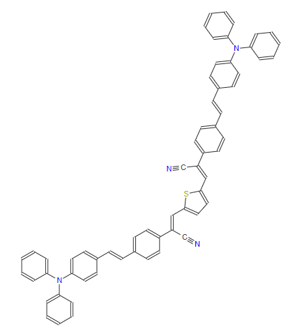 SMILES:N#C/C(=C\C1=CC=C(/C=C(\C#N)C2=CC=C(/C=C/C3=CC=C(N(C4=CC=CC=C4)C4=CC=CC=C4)C=C3)C=C2)S1)C1=CC=C(/C=C/C2=CC=C(N(C3=CC=CC=C3)C3=CC=CC=C3)C=C2)C=C1