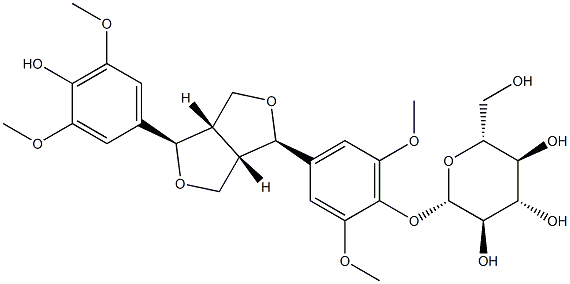 (-)-丁香树脂酚-4-O-BETA-D-吡喃葡萄糖苷,(-)-Syringaresinol-4-O-beta-D-glucopyranoside,分子式:C28H36O13 ,分子量:580.57764