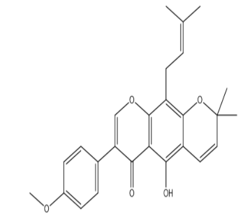 西安齐岳生物科技有限公司生产销售“5-Hydroxy-3-(4-methoxyphenyl)-8,8-dimethyl-10-(3-methylbut-2-en-1-yl)pyrano[3,2-g]chromen-4(8H)-one|cas4225-28-9”“5-Hydroxy-3-(4-methoxyphenyl)-8,8-dimethyl-10-(3-methylbut-2-en-1-yl)pyrano[3,2-g]chromen-4(8H)-one|MF: C26H26O5 MW: 418.48164”,该产品仅用于科研,如果需要请联系我们