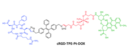 cRGD-TPE-Pt-DOX,一种AIE材料。the cRGD-TPE-Pt-DOX probe showed higher potency than both cisplatin and DOX when they are used individually.