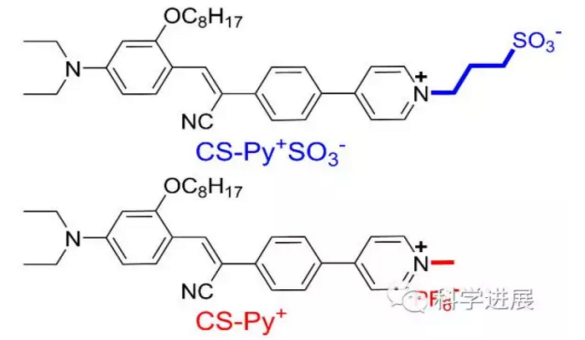 AIE荧光材料(CS-Py+SO3−和CS-Py+),一种AIE光敏剂,AIEgens,聚集诱导发光材料,齐岳生物提供定制合成服务,通过简易的4步化学合成分别得到了2个的长烷基链取代、不同电荷分布的AIE荧光材料CS-Py+SO3−和CS-Py+