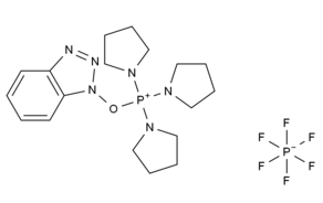 Benzotriazole-1-yl-oxytripyrrolidinophosphonium hexafluorophosphate,化学式 C18H28F6N6OP2, 熔点 154-156 °C (dec.)(lit.)